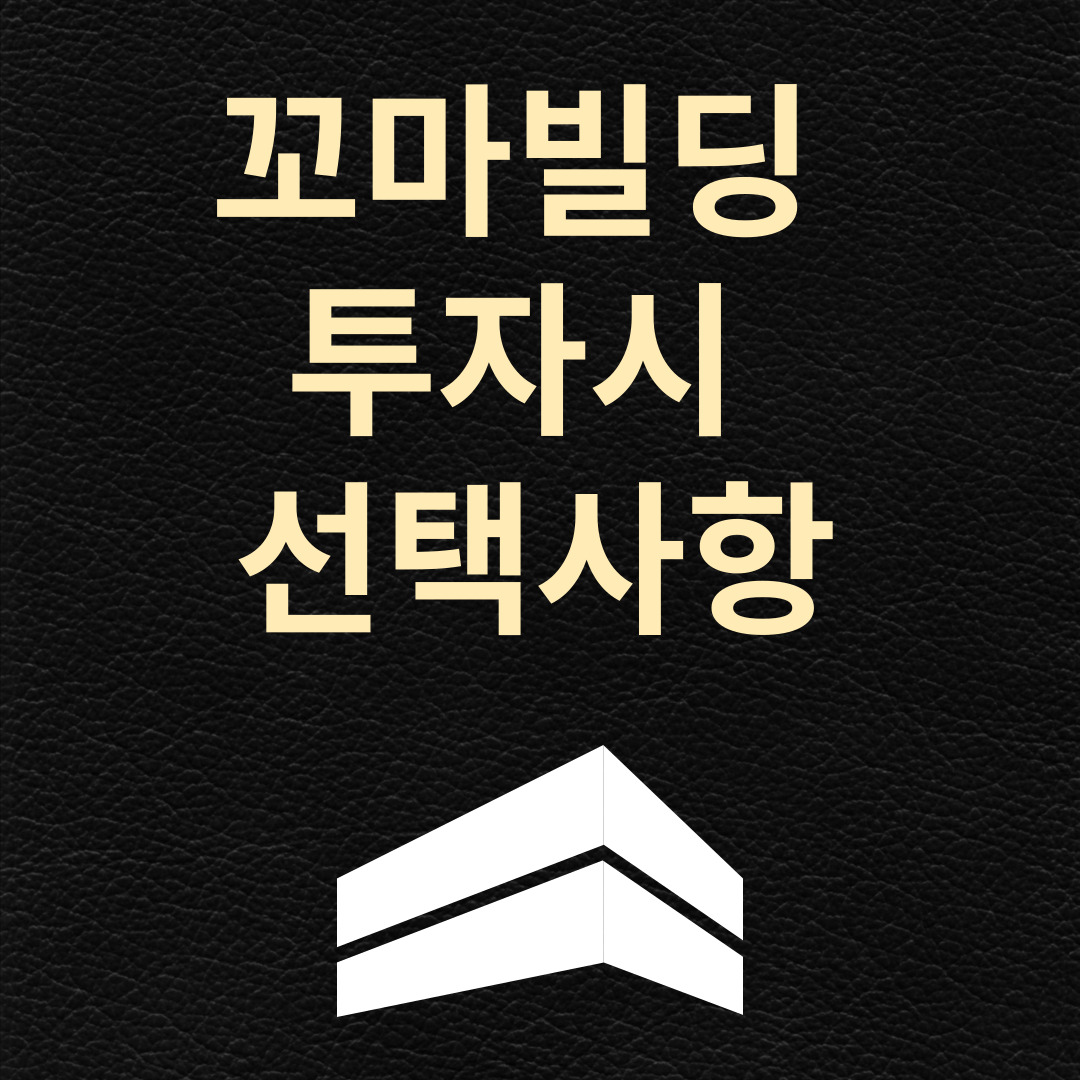 꼬마빌딩에 투자하기전 본인의 계획에 맞게 몇가지 중요한 선택을 해야합니다.
